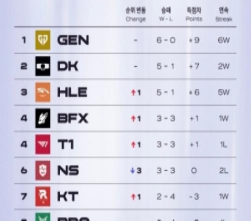 外网分享25LCK第三周和26LCK第三周战队排行对比:只有HLE仍前三